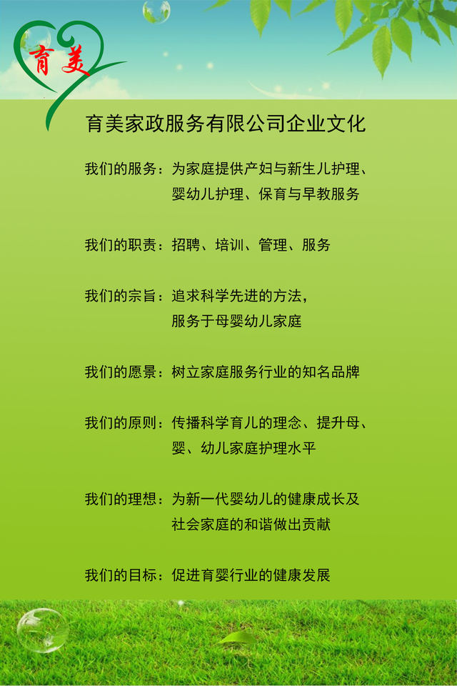 育美家政 專于婦嬰 來(lái)自華東 服務(wù)鄭州/育美家政服務(wù)有限公司是一家員工制管理(非中介)的公司。 主營(yíng)業(yè)務(wù):產(chǎn)婦護(hù)理和新生兒護(hù)理/0-3歲嬰幼兒護(hù)理/催乳按摩服務(wù)/月嫂和育嬰師培訓(xùn)/家庭育兒入戶指導(dǎo)